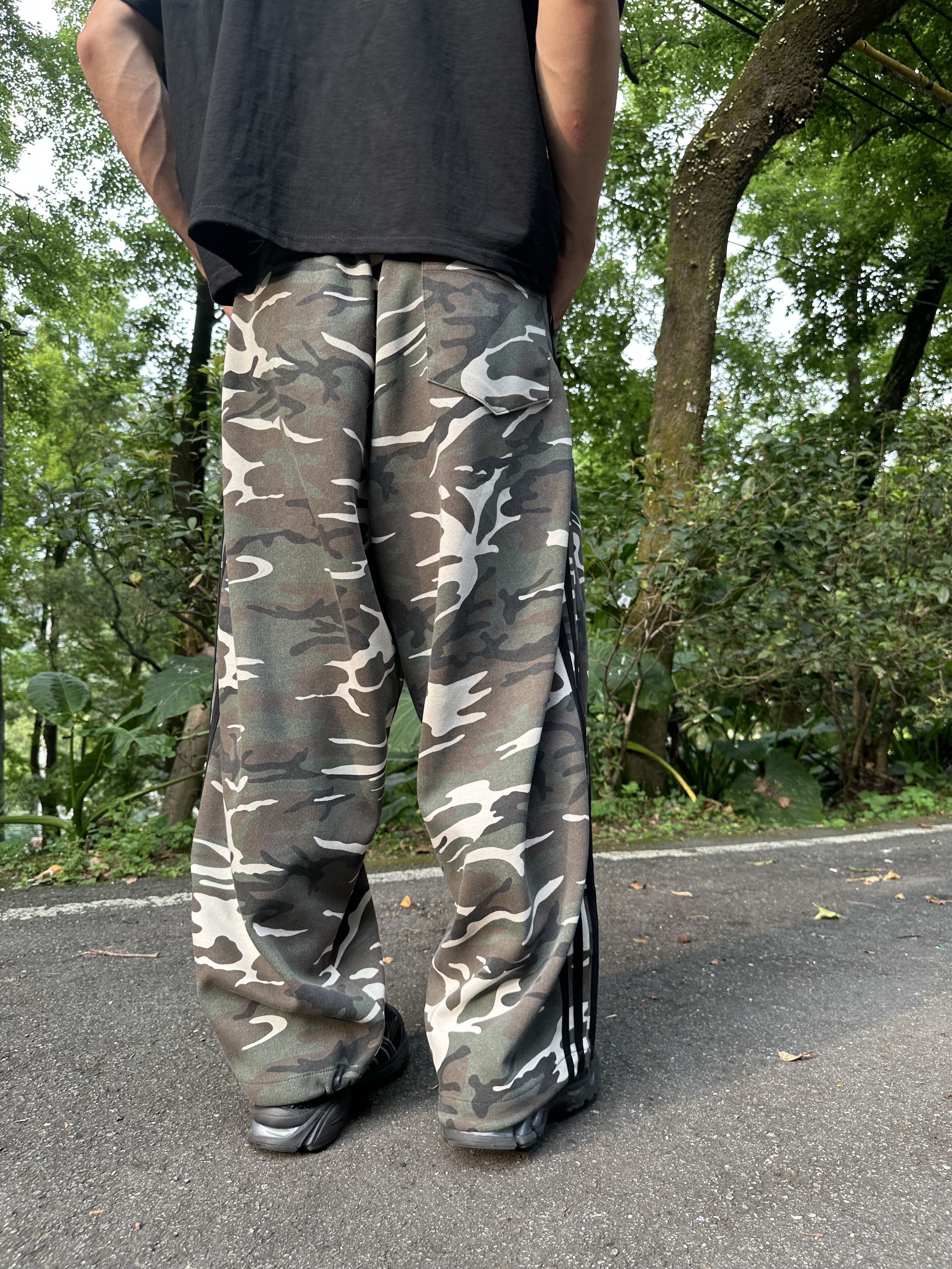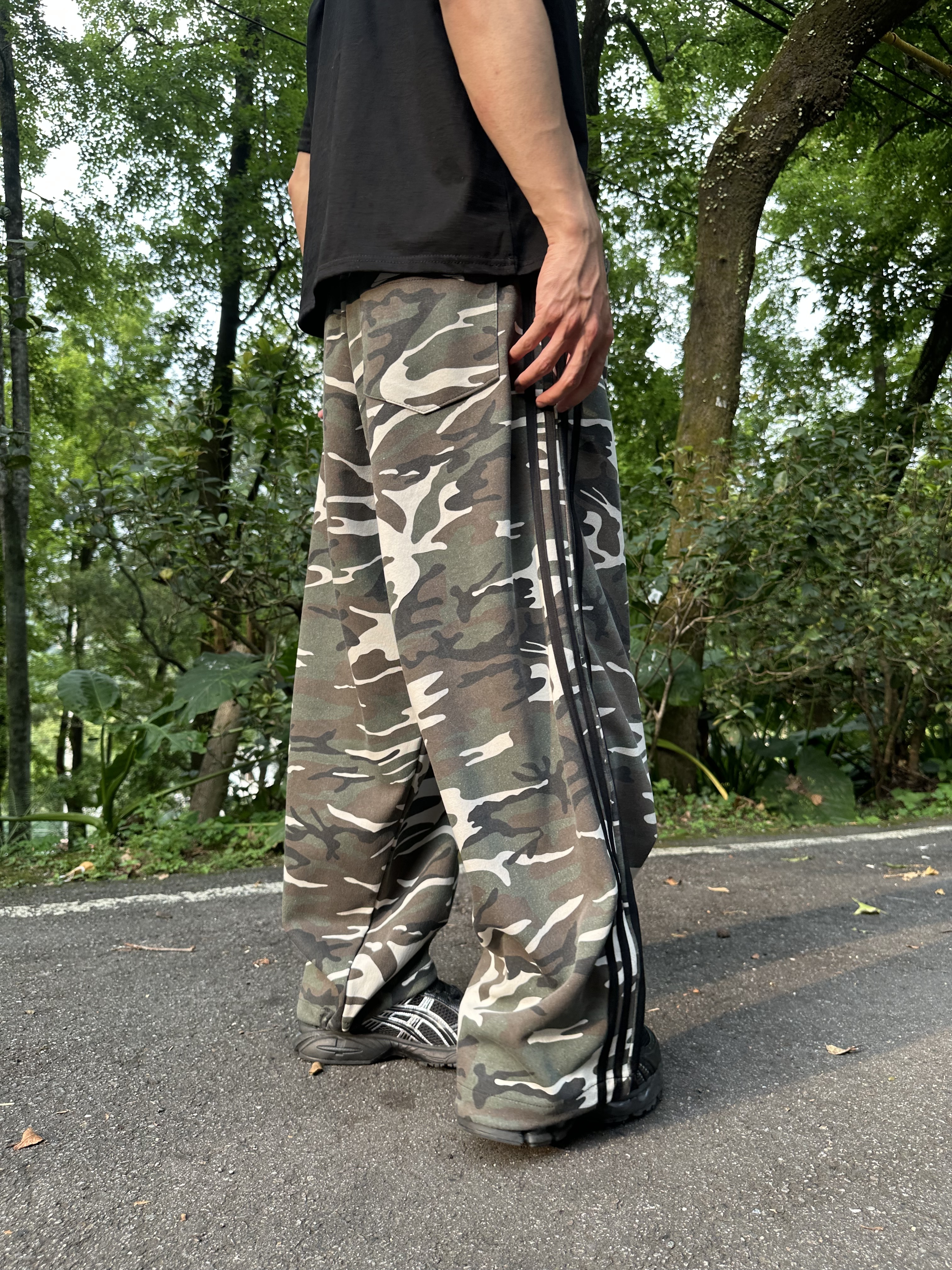 Camo 迷彩 四線 條紋 寬鬆 棉長褲
